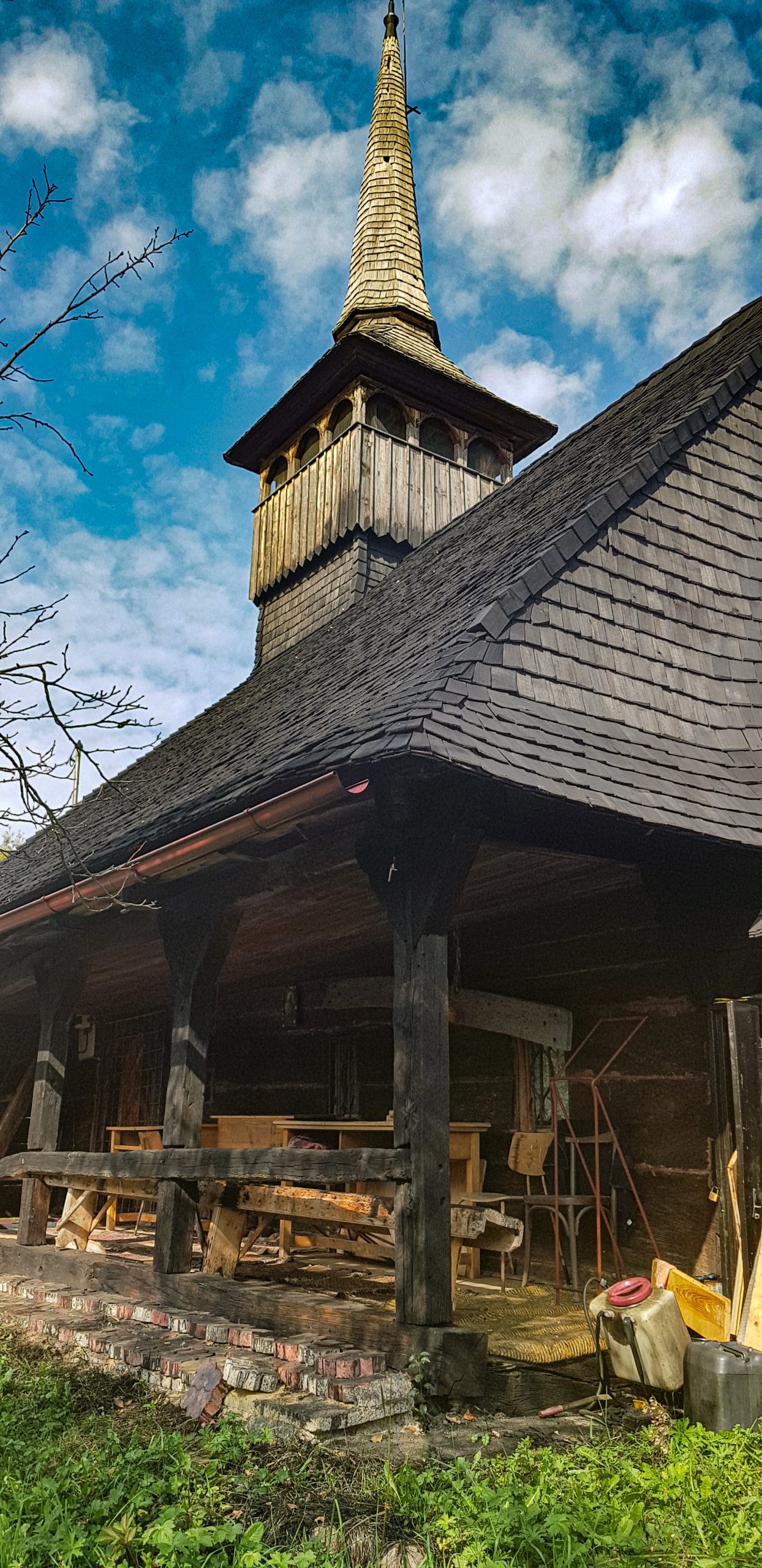 Biserica în sine a căpătat o culoare închisă la exterior, datorită tratamentelor la care a fost supus lemnul pentru a-i păstra rezistența. Spre deosebire de alte lăcașuri asemănătoare, deocamdată nu a fost nevoie să se acopere cu tablă întreaga structură, ceea ce îi conferă un farmec special.