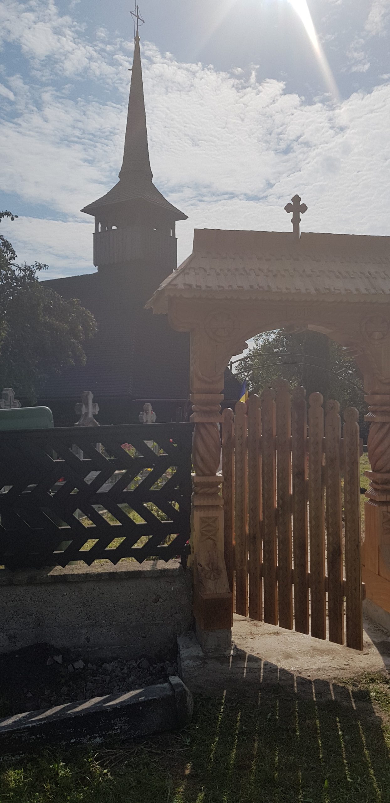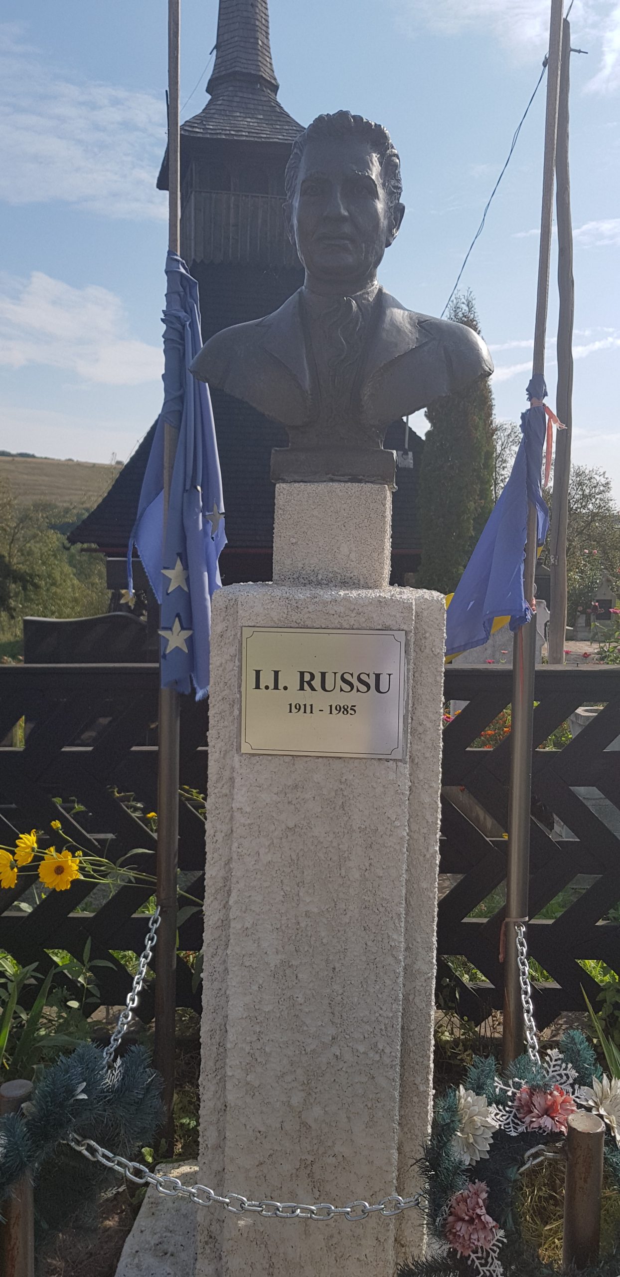 În spatele bustului se întinde curtea dimprejurul bisericii, un loc plăcut pentru un repaus, mai ales primăvara și vara, când spațiul este colorat de o multitudine de flori. În dreapta bisericii și în spatele ei se regăsesc cruci și morminte. Cele mai recente sunt organizate și aranjate în linii drepte, dar prin spate veți vedea monumente funerare răzlețe, înclinate și parțial șterse de timp. Pe una dintre ele se vede clar anul morții: 1895. Alta a fost, mai mult sau mai puțin inspirat, încadrată de dale de pavaj cu cel puțin 100 de ani mai tinere decât ea.