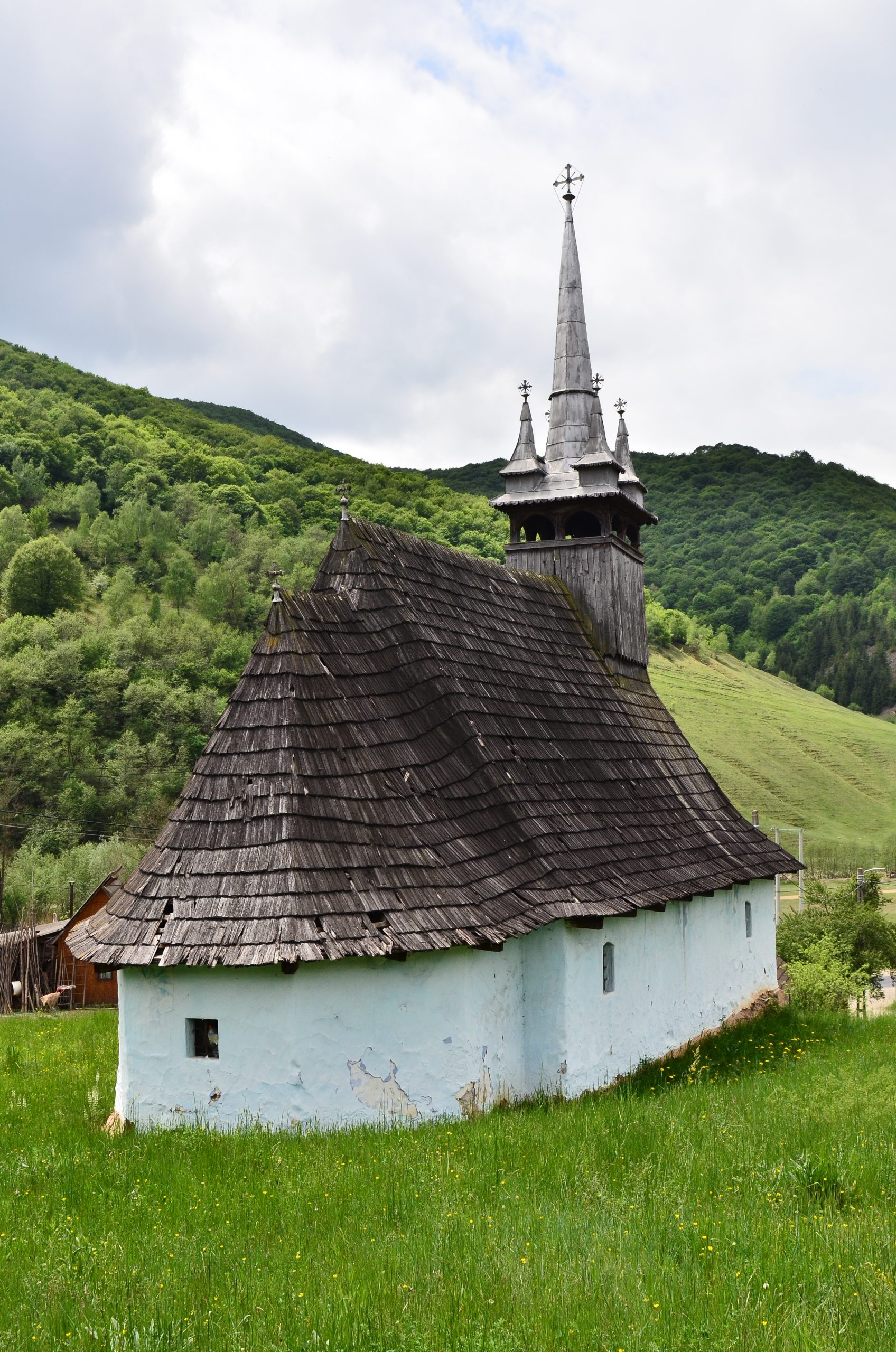 Și biserica de lemn din această localitate poartă tot hramul „Sfinții Arhangheli Mihail si Gavril” și face parte din patrimoniul lăcașurilor de cult din lemn din Transilvania, clasată în lista monumentelor istorice clasa B. O găsiți în apropiere de drumul principal, lângă o uliță orientată înspre nord, pe o mică elevație a terenului, în mijlocul unei curți de formă aproape ovală, în care nu există altă vegetație decât iarba înaltă, necosită. Nu există nicio alee prin iarba deasă spre clădire, semn că aceasta e rareori vizitată. Curtea este înclinată spre sud și oferă o frumoasă priveliște asupra văii râului Iara și a peisajelor submontane de pe partea cealaltă a râului.