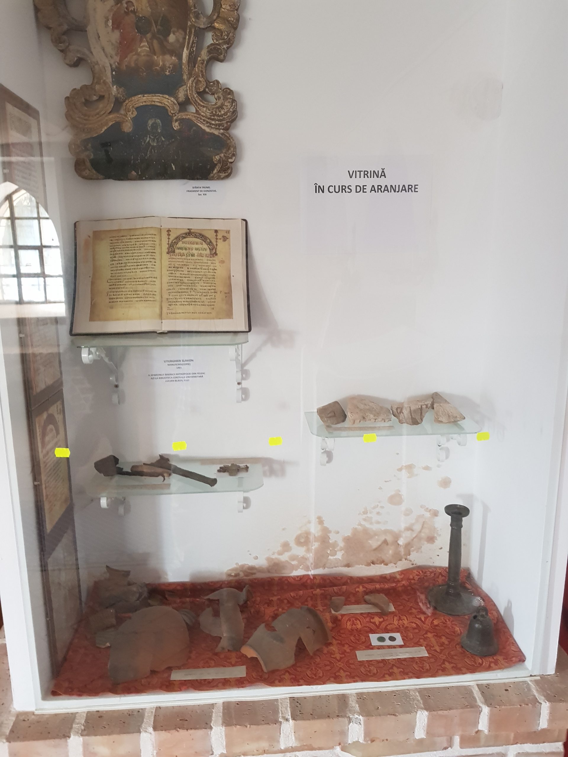 Biserica a fost înzestrată cu mari valori încă din timpul domniei lui Ștefan cel Mare, și anume manuscrise: un Liturghier slavon, din anul 1481, scris pe hârtie, cu frontispicii deosebite; Tetraevangheliarul, datând din anul 1488, deosebit fiind datorită istoricului construirii bisericii încă din timpul arhiepiscopului Daniil dar și datorită faptului ca a fost ferecat în argint de Isac Vistiernicul lui Ștefan cel Mare în 1498. O copie a liturghierului slavon se regăsește încă în biserică, dar originalul este la Biblioteca Central Universitară Lucian Blaga din Cluj-Napoca. Expuse înăuntru sunt și alte obiecte găsite în timpul excavațiilor din curte, precum și icoane, cruci și alte obiecte de cult, dar și câteva obiecte de port popular. Alte obiecte au fost duse la biserica cea nouă, iar altele au ajuns în muzee. Se remarcă și o cruce ”celtică” din secolul XVII, excavată și păstrată în interiorul bisericii. Deși poate părea neobișnuit, simbolul crucii celtice nu este nemaiîntâlnit în spațiul românesc, acesta fiind un simbol universal al bisericii biruitoare.